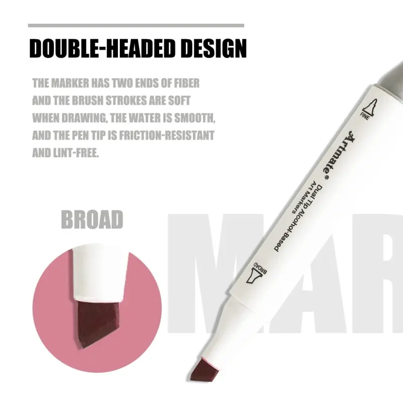 The fine tip is used for outlining and drawing details, while the thick tip is used for spreading color over a large area and filling the fiber tip, which is wear-resistant and resistant to drawing.