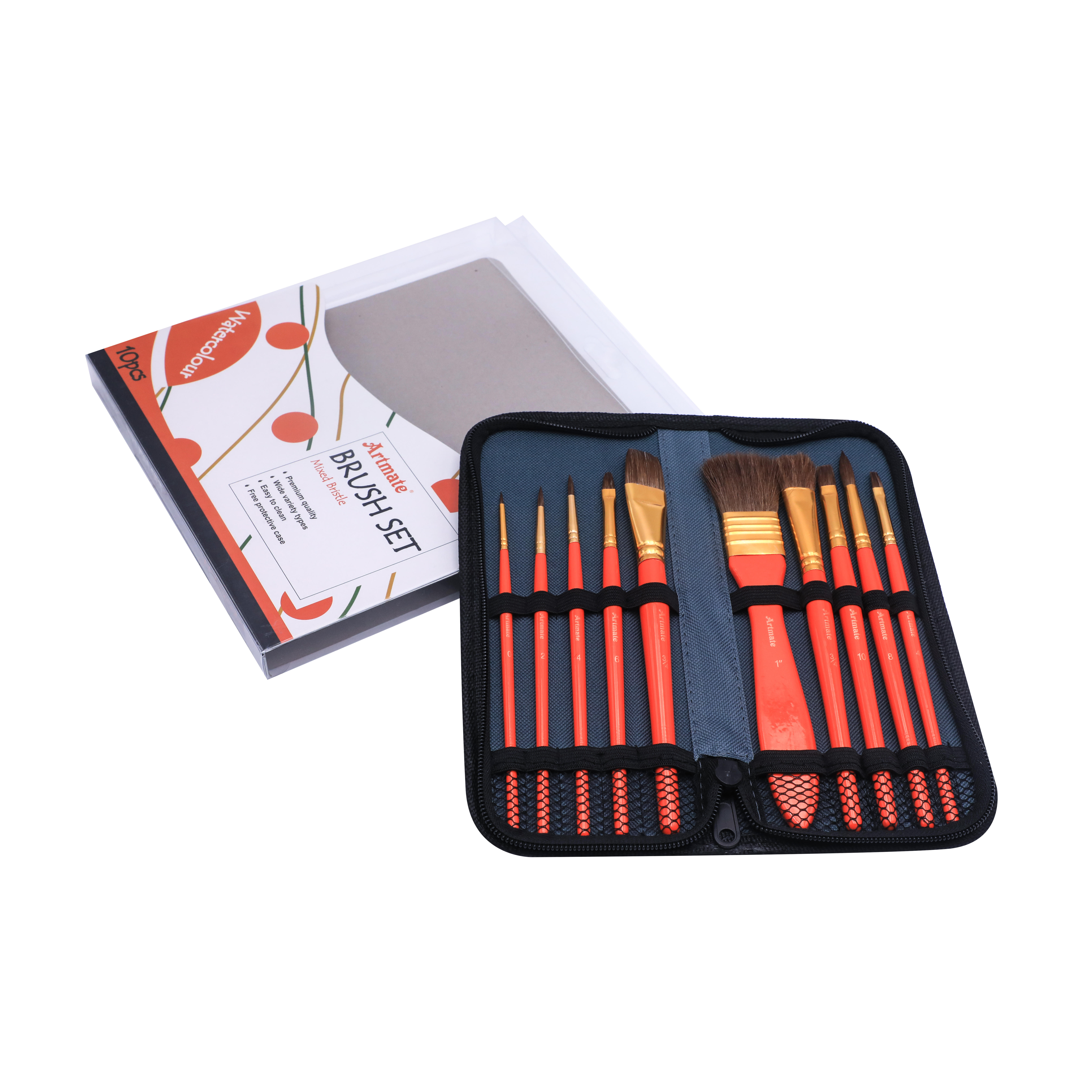 Artmate Art Paint Brushes Set 10pcs with zipper bag for Acrylic Watercolor Oil Gouache Painting,Painting Brush Set,Paint Brush